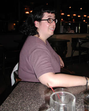 Comments: After eating we adjourned to the karaoke room. We got a big table BEHIND the karaoke guy, which meant that when our sisters were singing we were watching their backs. Also, it meant that people in the window were checkin us out, too. Quoth B Monday: "being downtown after dark-it feels a little like a post apocolyptic pep rally. Lots of people looking in the window-checking out music or asses or both?" Songs Sung: PSPSILY: "Kentucky