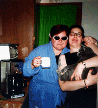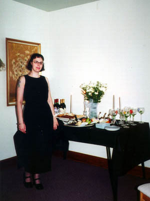 Hostess Whiskey Daisy wrestles with another bottle (we drank 6)!